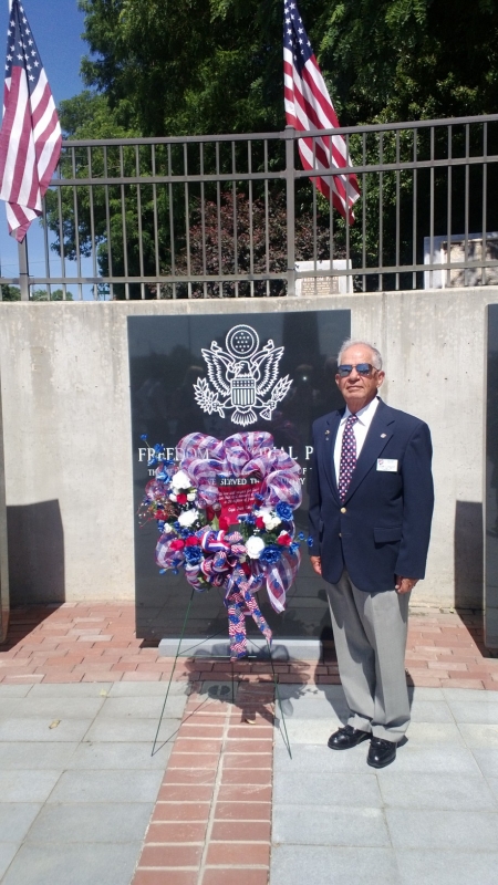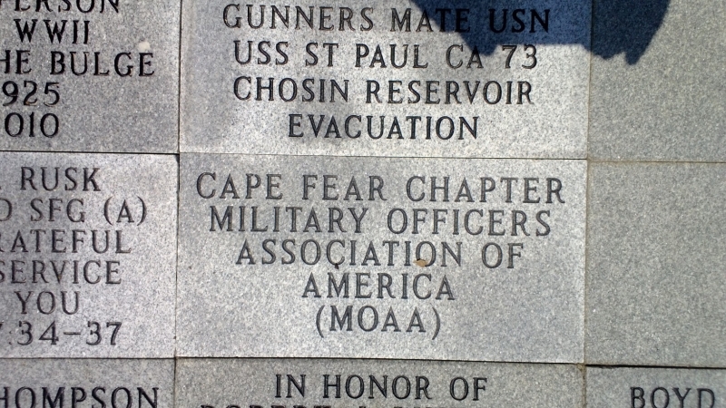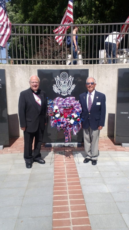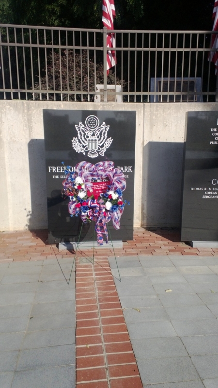 The same wreath was again presented at the Memorial Day ceremony at Freedom Memorial Park on Memorial Day, Monday, 25 May 2015. The wreath was on display at the Armed Forces Memorial tier at the park. The beautiful wreath was made and donated to the Cape Fear Chapter by Linda Sanderson.